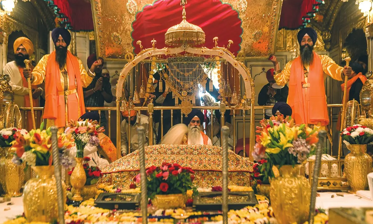 La presencia del Guru Granth Sahib, el texto sagrado del sijismo, define la experiencia dentro del Templo Dorado de Amritsar. Los himnos se escuchan de forma constante y guían el ritmo del lugar. Los pasillos permiten un recorrido fluido alrededor del santuario, lo que facilita la contemplación del interior del Templo Dorado desde distintos ángulos.